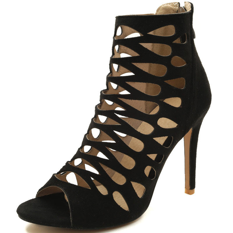 Women's Summer Fashion Open Toe Gladiator Sandals Cut-out Back Zipper Thin High Heel Sandals Large Size Ladies Shoes